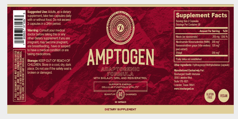 Formulated with Shilajit, NMN, Resveratrol, and Niacinamide Amptogen packs a powerful punch of benefits. Touted as the ‘Destroyer of weakness’, Shilajit is rich in minerals, fulvic acid, and humic acid making it an excellent aid in detox, energy production, hormonal balance, and overall mineral replenishment on a cellular level. Additionally, the combo of NMN + Resveratrol brings in a strong antioxidant, anti-inflammatory, and mitochondrial boosting profile thanks to their ability to support NAD+ production - ultimately contributing to a healthy aging process.