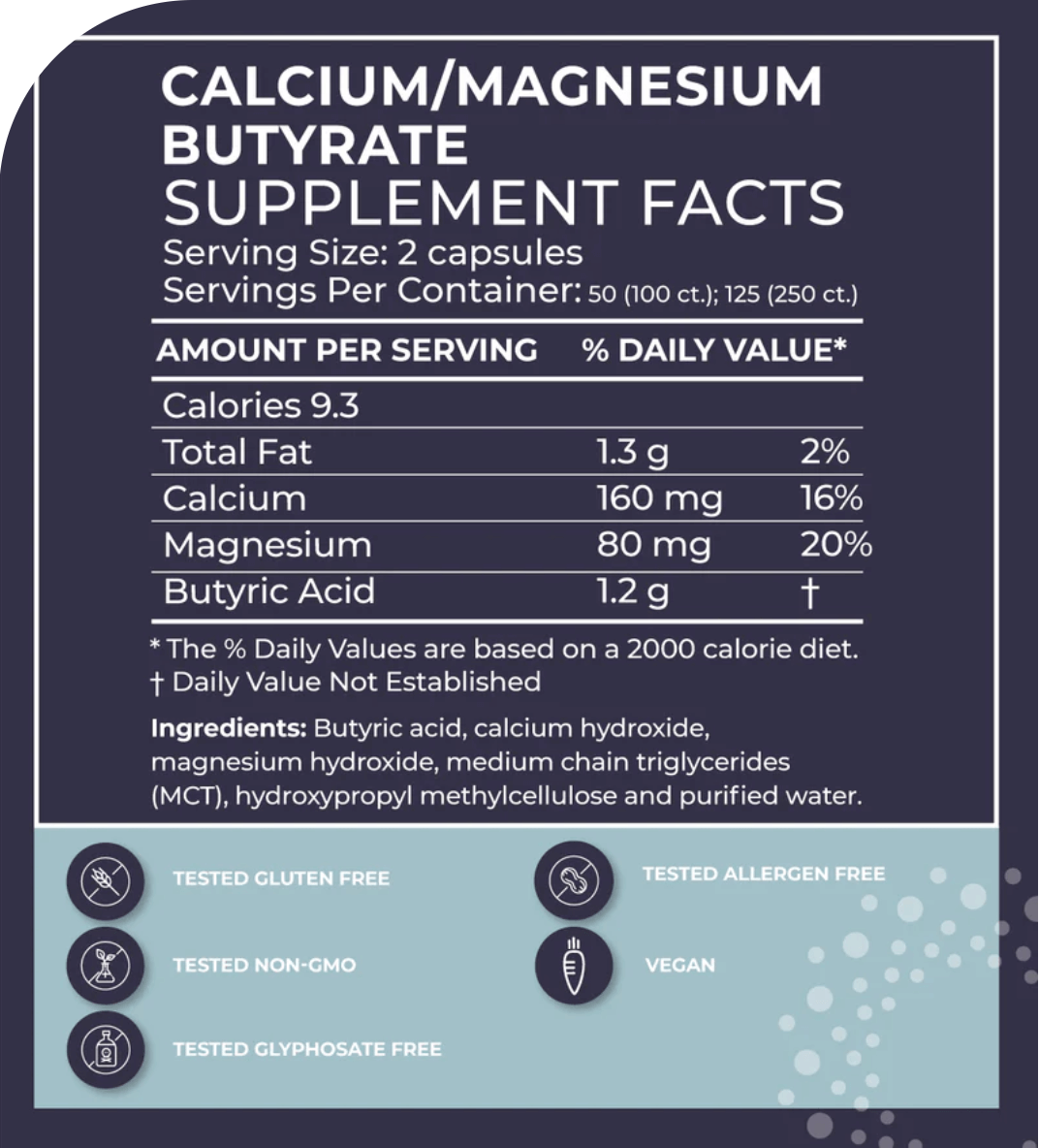 This is why we developed BodyBio Butyrate — a simple formulation (butyric acid + minerals) to protect your gut at the cellular level.