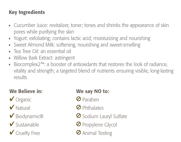 Cool and balance your skin with our Clear Skin Probiotic Cleanser. This clarifying cream-gel cleanser treats oily and problem skin with cucumber and tea tree oil. Sweet almond milk and yogurt reduce the visible signs of problem skin and breakouts without stripping the skin of moisture. Cruelty-free and formulated without parabens, sodium lauryl sulfates, synthetic dyes, petrochemicals, phthalates, GMOs and triclosan.