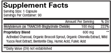 Codeage Binder + offers a premium blend of activated charcoal, bentonite clay, humic acid, fulvic acid, organic broccoli sprouts, organic chlorella extract, wild yucca root extract, and molybdenum in an all-in-one formula. This solution is an alternative herbal cleanse and is easy to use.