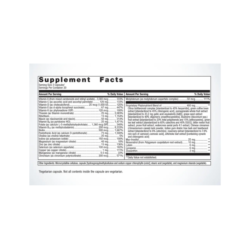 - PhytoMulti Supplement: Proprietary blend of 13 concentrated extracts and phytonutrients found in a healthy Mediterranean diet