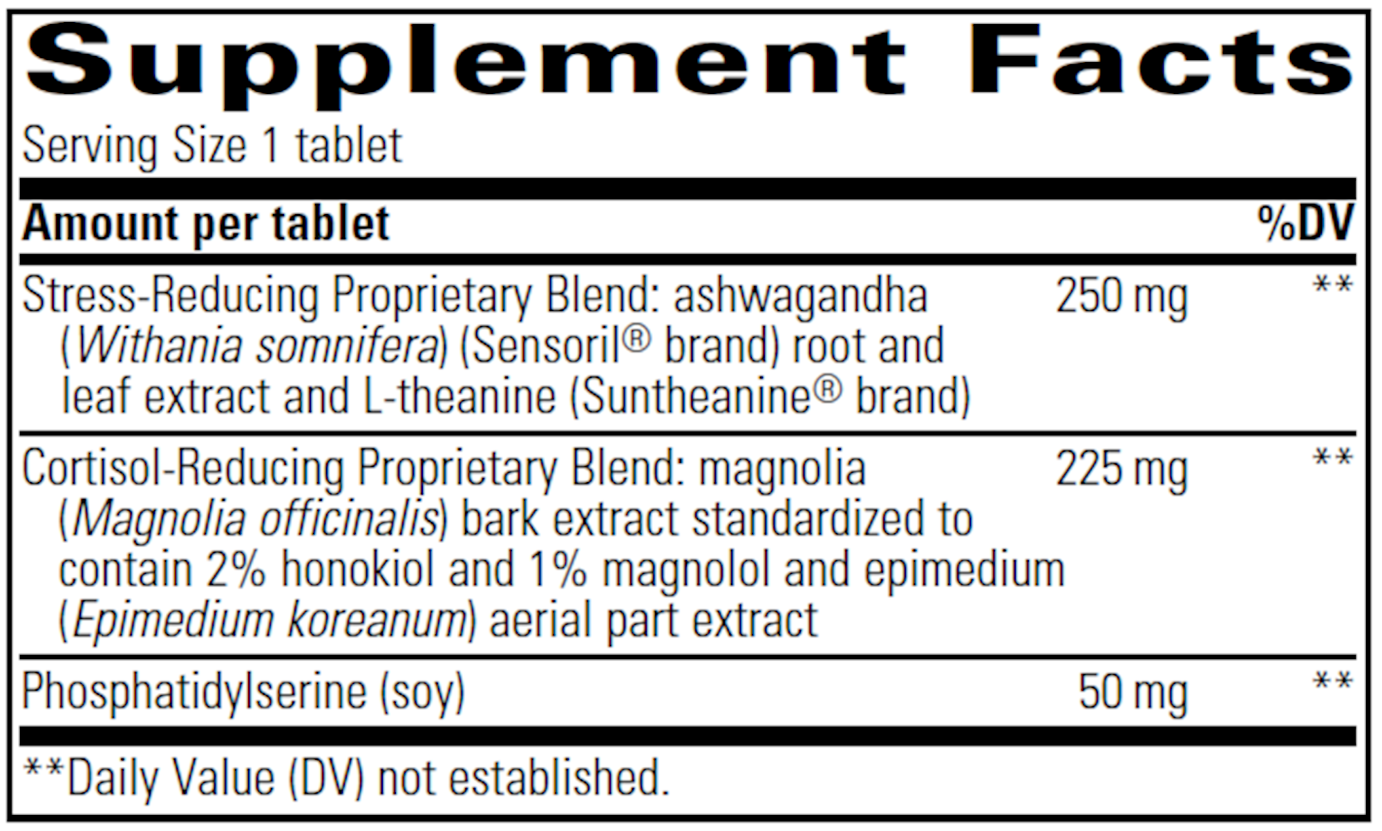 Variations of cortisol secretion can be an indicator of how well a body is coping with stress. Cortisol production is generally at its peak in the early hours of the morning and then gradually declines over the course of the day. Cortisol Manager has been formulated with stress-reducing ingredients and botanicals to promote relaxation, help alleviate fatigue, and support healthy cortisol levels.* By balancing cortisol levels, Cortisol Manager can help reduce stress, which supports a restful night's sleep without diminishing daytime alertness.* Formulated to reduce stress.