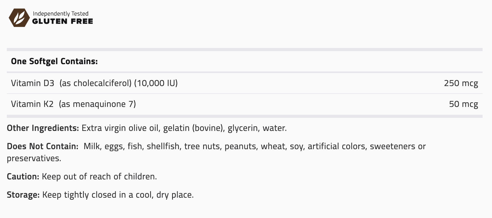 D3-10,000 + K2  is a natural, soy-free, bioidentical vitamin D supplement. Vitamin D, considered both a hormone and a vitamin, is manufactured in response to skin's exposure to sunlight and is essential to the body’s absorption of calcium. This formula includes a natural vitamin K2 (as vitaMK7®†) which supports enhanced utilization of calcium in the bloodstream.* It is an all-trans natural menaquinone 7 with the highest bioavailability and longest half-life in the blood.*