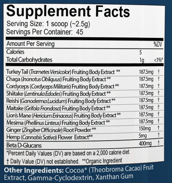Our USDA Organic Daily 8 Mushroom Immunity Boost Sample is 1 serving of the perfect blend of eight immune-boosting mushrooms, and ginger to support and fortify your overall health and wellbeing. We added single-origin cacao organically grown and processed by a 5th generation Dominican cacao farmer to make this blend a delicious choice for your immune support all year round.