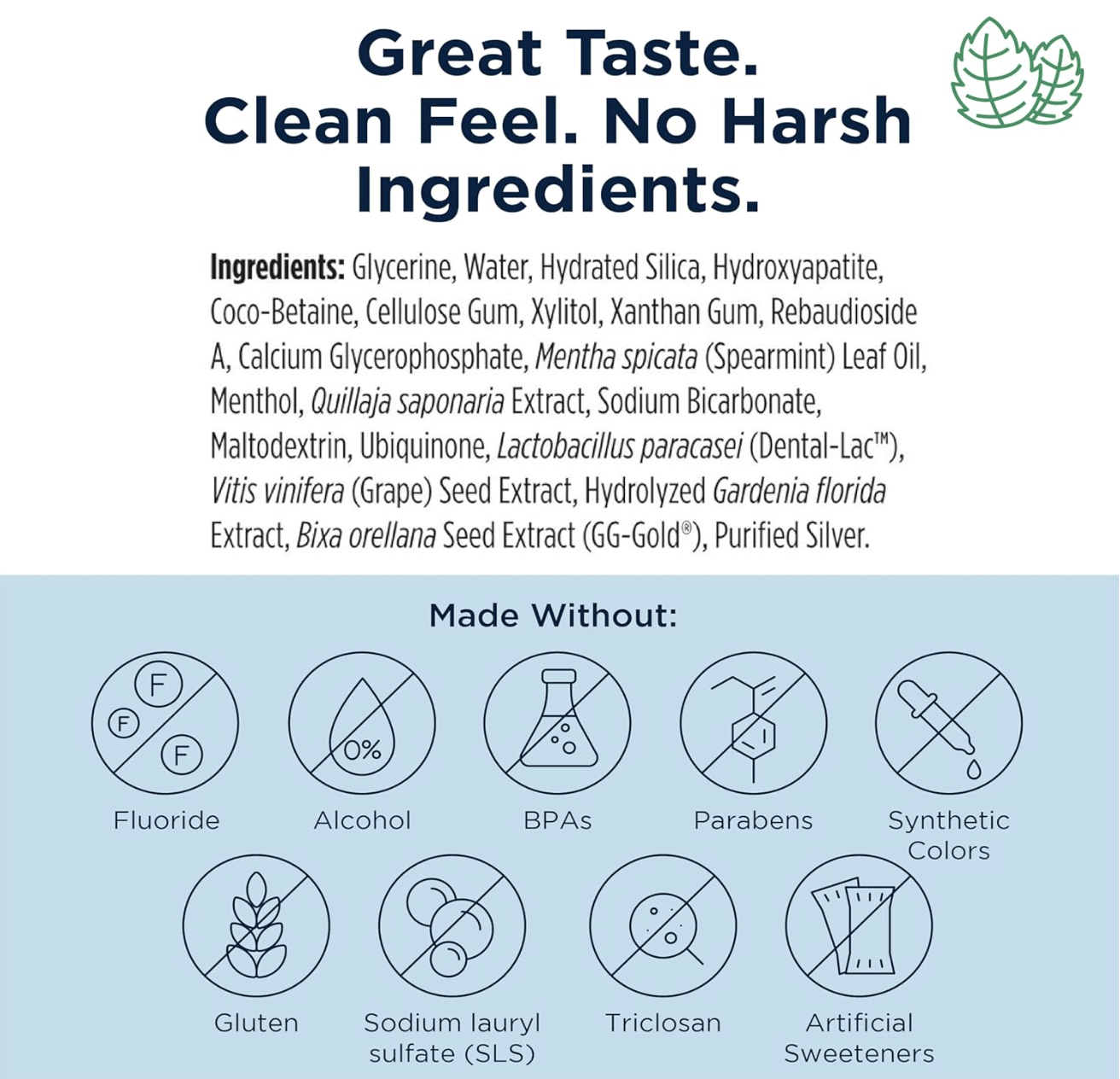 PerioBiotic™ Silver is a toothpaste that features purified silver, coenzymeQ10 (CoQ10), grape seed extract, and Dental-Lac™, a Lactobacillus paracasei probiotic that has been shown in research to help support oral microbial balance and periodontal health. This spearmint-flavored toothpaste contains no fluoride, sulfates, or saccharin. It is also free of BPAs, parabens, synthetic colors, gluten, and synthetic sweeteners. Periobiotic™ Silver may help maintain dental and oral health and may support oral microbial balance.