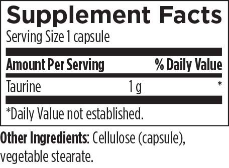 Taurine capsules deliver effective doses of this sulfur-containing amino acid found mainly in meat and seafood. Vegetarians and non-meat/fish eaters, therefore, may not be meeting their requirements for taurine. Scientists are unsure whether humans make enough taurine, and elevated levels of homocysteine often suggest the body may be having difficulty making this compound. Taurine is also needed to make bile and taurocholic acid.