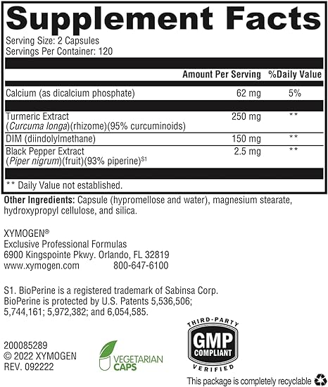 DIMension 3® represents a three-dimensional approach to supporting healthy estrogen metabolism. Research suggests that diindolylmethane (DIM), curcumin (from turmeric extract), and the patented black pepper extract BioPerine® support balanced estrogen metabolism.*
