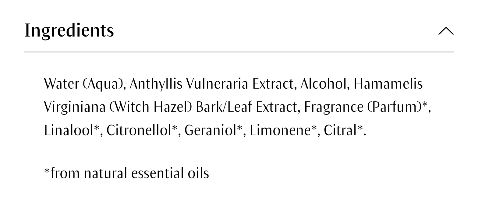 Formulation: Anthyllis extract helps skin remain balanced and healthy. Witch hazel extract supports tone and elasticity, refining pores.