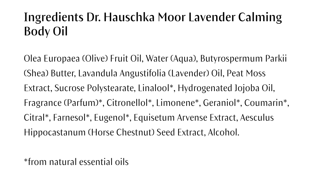 Unlike other Dr. Hauschka body oils, which are most effective when applied to damp skin, our Moor Lavender Calming Body Oil can also be used on dry skin.