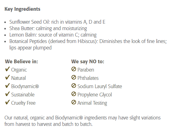 A petroleum free citrus treat for the lips with shea butter and sunflower seed oil to give lips maximum hydration and a sexy sheen. Eminence continued use the natural peptides make lips look voluptuous and youthful.