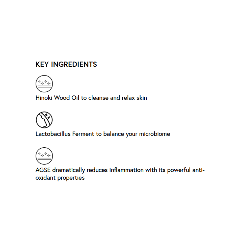 Lactobacillus Ferment, a potent postbiotic, works alongside Maltodextrin, a prebiotic fuel, and Hinoki Wood Oil to support microbial balance and increase production of anti-microbial peptides—key to reducing inflammation and strengthening our barrier. Our proprietary Activated Grape Seed Extract (AGSE) offers antioxidant protection six times more potent than Vitamin C, while Glucosylrutin helps shield against UV and blue light induced damage.