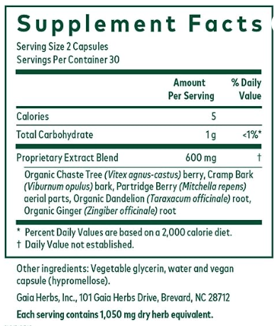 Gaia Herbs Pro Vitex helps promote a healthy balance of normal levels of female hormones and emotional well being.Vitex has long been used to support hormone production and balance. Gaia Herbs uses certified organic Vitex berry to provide a full spectrum herbal extract for women's health. Additonally mean't to aid in support of a normal menstrual cycle and provide support for the transition into Menopause and eases.