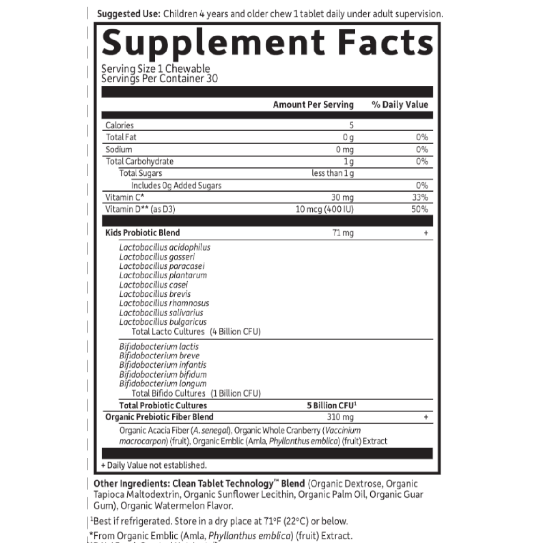 Organic Kids+—a unique Certified USDA, Non-GMO Project Verified Organic yummy chewable probiotic especially for kids to offer immune system and digestive support.*