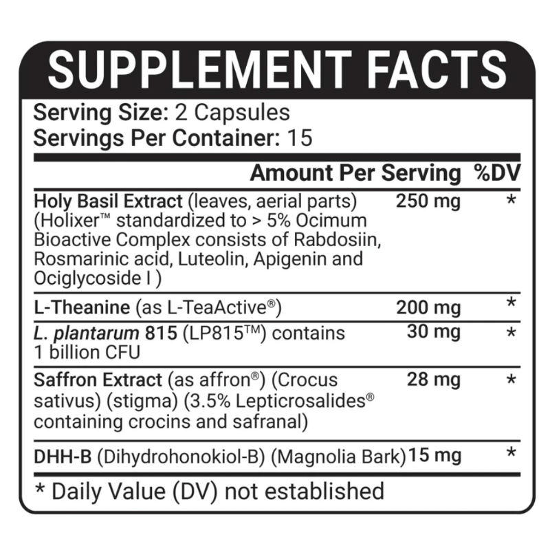 Serenity features a specialized form of Holy Basil called Holixerâ„¢ which is a patented and extensively researched preparation standardized to contain at least 5% Ocimum Bioactive Complex, a unique blend of bioactive compounds including Rabdosin, Rosmarinic acid, Luteolin-7-o-beta-glucuronide, Ociglycoside I, and Apigenin-7-o-beta-glucuronide.