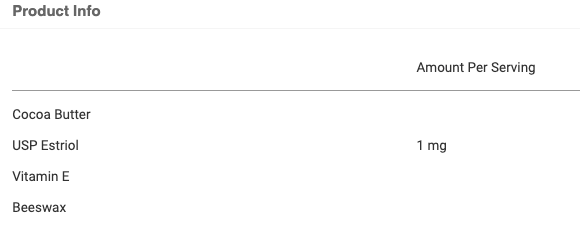 A moisturizer to help relieve common vaginal dryness associated with normal menopause. Formulated with all-natural ingredients: organic cocoa butter, vitamin e and beeswax to provide prolonged moisture.