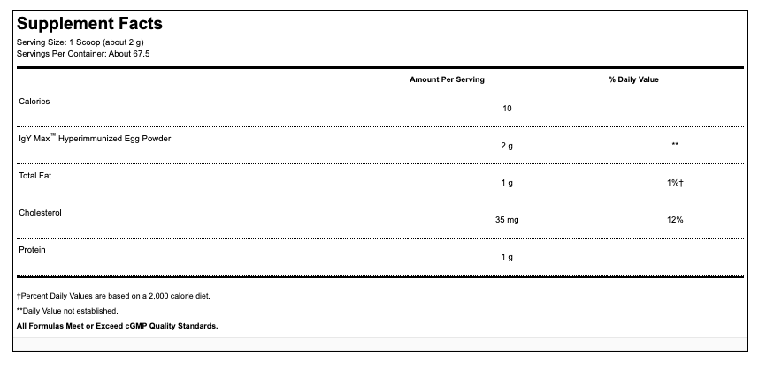 IG 26 DF contains self-affirmed GRAS IgY Max™, which provides IgY immunoglobulins and immunoregulating molecules from hyperimmune chicken egg. Research suggests that this dairy-free source of immunoglobulins and immune cofactors helps support immune function in the intestine and a healthy intestinal environment. These benefits positively impact extraintestinal health. Preliminary research also suggests a role for the formula’s immunoregulating molecules in cytokine modulation and in sports recovery applications.
