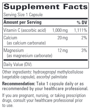 An excellent source of antioxidant support, Buffered Vitamin C uses pure crystalline ascorbic acid to supply 1 gram of vitamin C in each capsule. This well-tolerated vitamin C formula supports a healthy immune system response and helps maintain healthy skin, collagen, and connective tissues.*