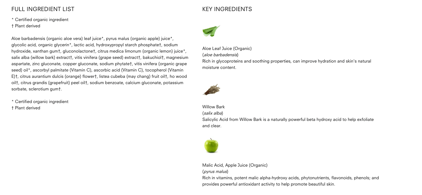 - Helps even skin tone and texture, and reduces the appearance of dark spots & discoloration with a potent patented dose of alpha hydroxy acids (malic acid from organic green apples, glycolic and lactic acids) and beta hydroxy acid (salicylic acid from willow bark).
