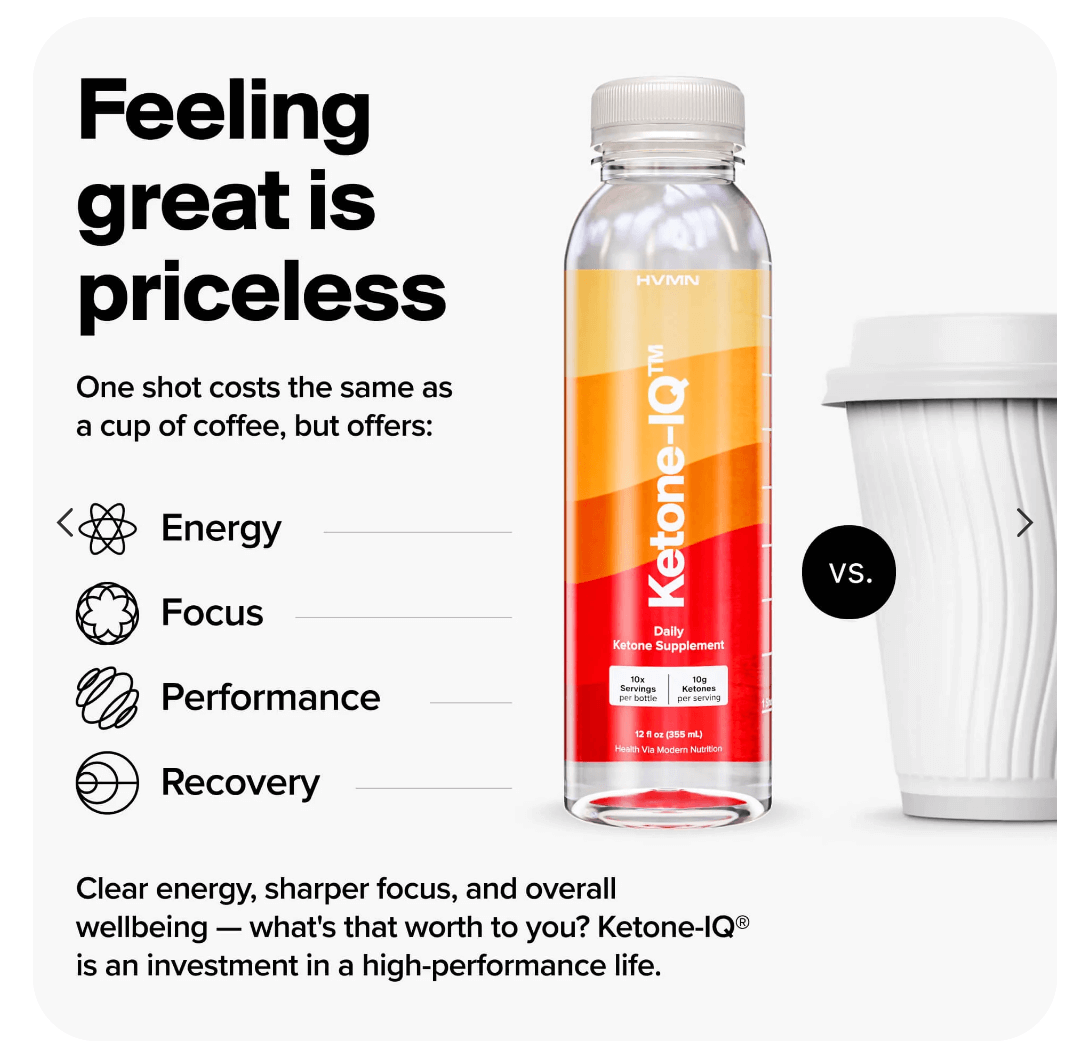 A clean energy boost without sugar or caffeine. One shot will help you feel clear, focused, and ready to take on the day. When you’re low on fuel, Ketone-IQ™ is your secret weapon.