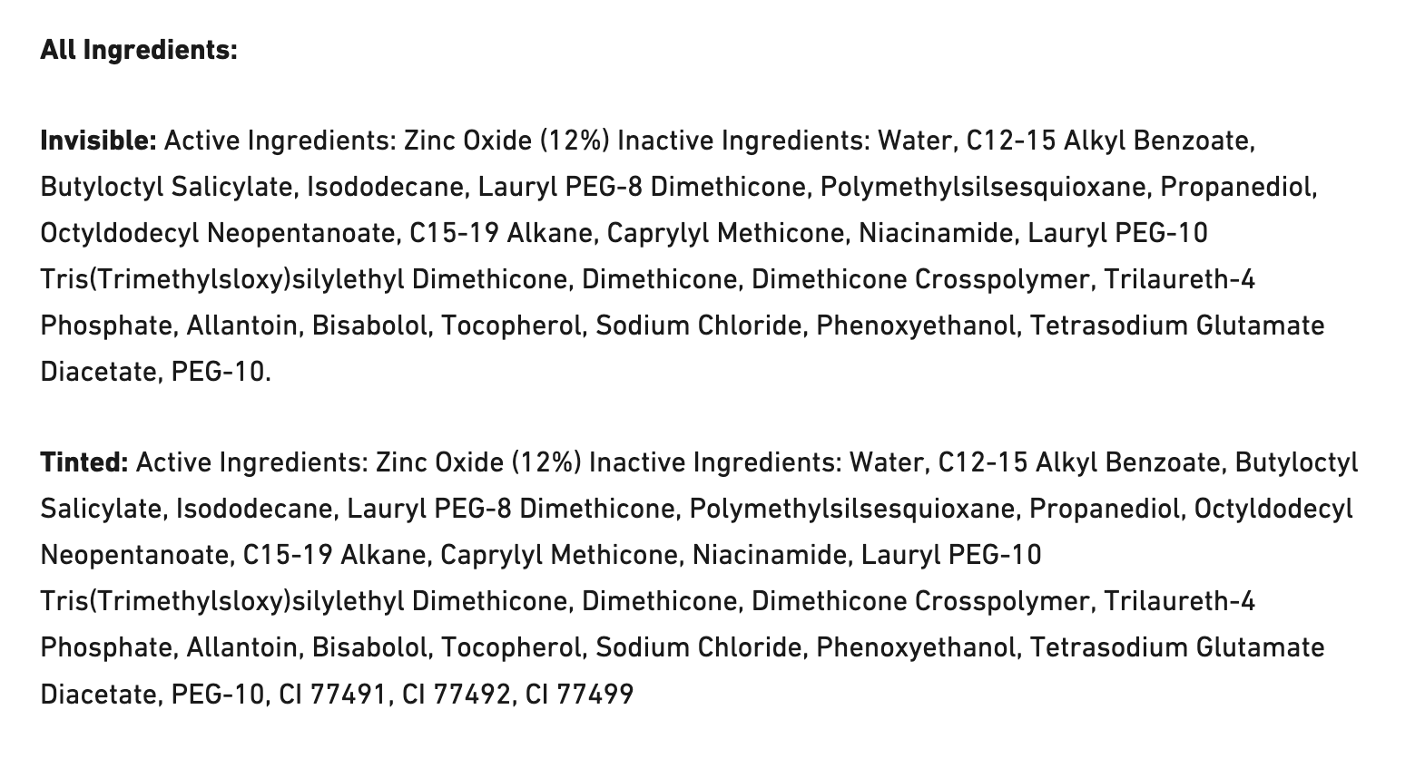 Key ingredients: zinc oxide (12%), niacinamide, bisabolol (chamomile extract)