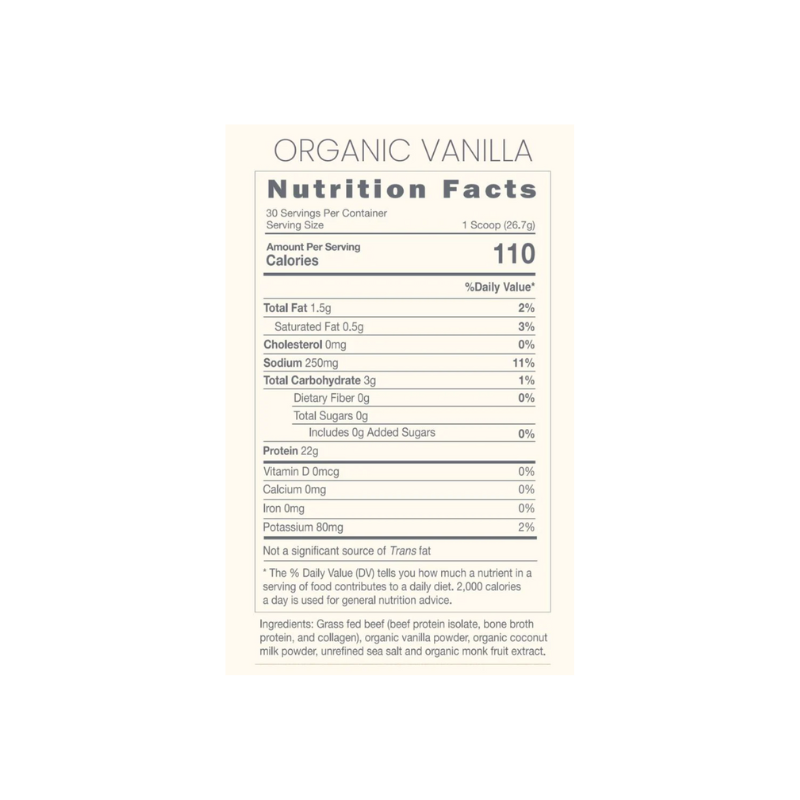 A whole food blend of grass fed beef protein isolate, bone broth protein, and collagen. This serves as a complete protein source that is rich in glycine and collagen to support recovery, build the tissues of the body, and promote longevity. It’s made entirely using water & steam extraction methods to preserve nutrients.