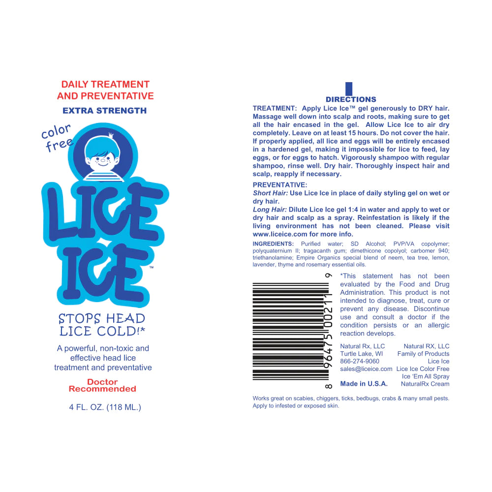- DIRECTIONS FOR USE: Apply Lice Ice gel generously to DRY Hair. Massage well into scalp and roots making sure to get all the get all the hair encased in the gel. Allow the gel to air dry for at least 15 hours – this may be overnight. It will effectively remove dead lice when the hair is washed with shampoo and without the needs to comb out the nits. The Lice Ice special blend will help to release the natural glue substance that hold the nits in place.