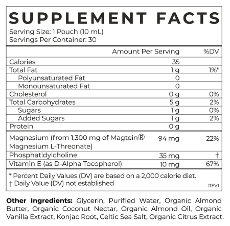 Cymbiotikas Liposomal Magnesium L Threonate is a convenient and delicious way to deliver magnesium directly to the brain. Developed by a team of scientists at MIT, our magnesium L threonate is highly absorbable and has been shown to increase brain levels of magnesium much higher than any other form of magnesium. In a clinical study of adults with cognitive impairment, Magnesium L-Threonate reversed measures of brain aging by 9 years. Magnesium is an essential mineral that is required for 80% of the body’s metabolic functions.
