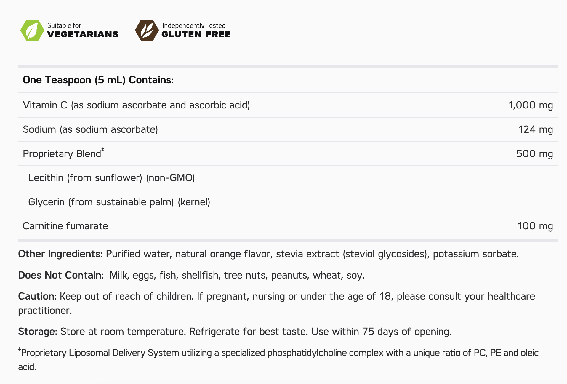 Liposomal Vitamin CÂ provides 1,000 mg of Vitamin C delivered in phosphatidylcholine liposomes for optimal absorption and bioavailability support.* Vitamin C provides antioxidant protection, immune support and supports the production of healthy connective tissue and collagen.*