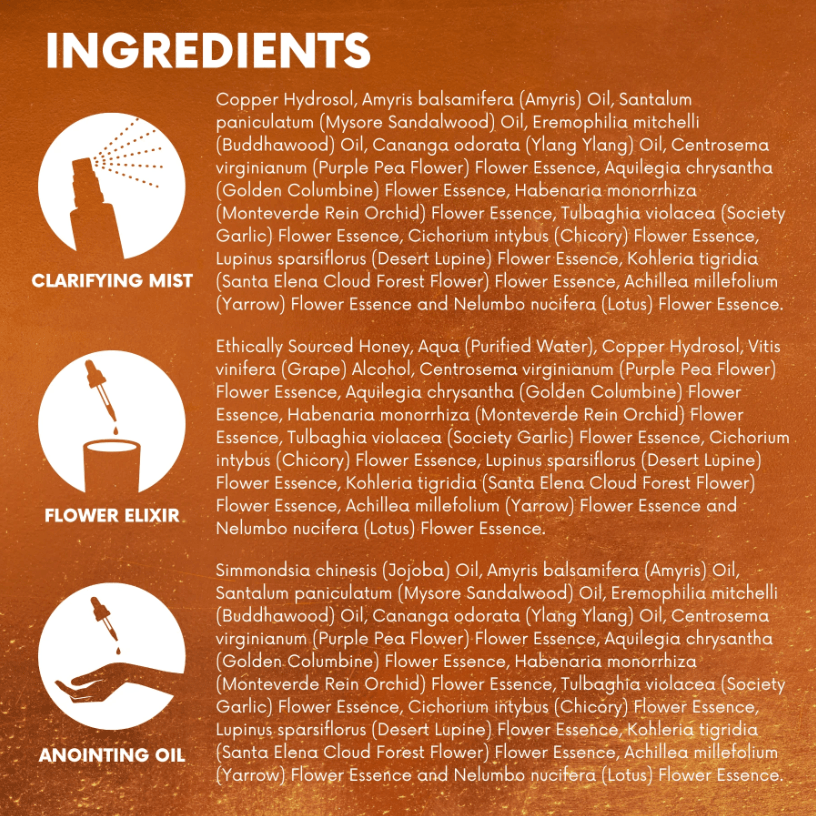 Clarifying Mist:Â Mist around your crown, & heart 5 times a day, everyday.