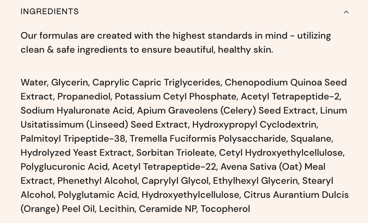 Combining an abundance of peptides that work to reduce the appearance of pores, sagging skin & wrinkles + fend off the damaging effects of environmental stressors, this powerful serum works wonders on stressed & aging skin. Natural hydrating & rejuvenating elements including polyglutamic acid, ceramides, quinoa extract & silver ear mushroom leave your skin soft & smooth to the touch!