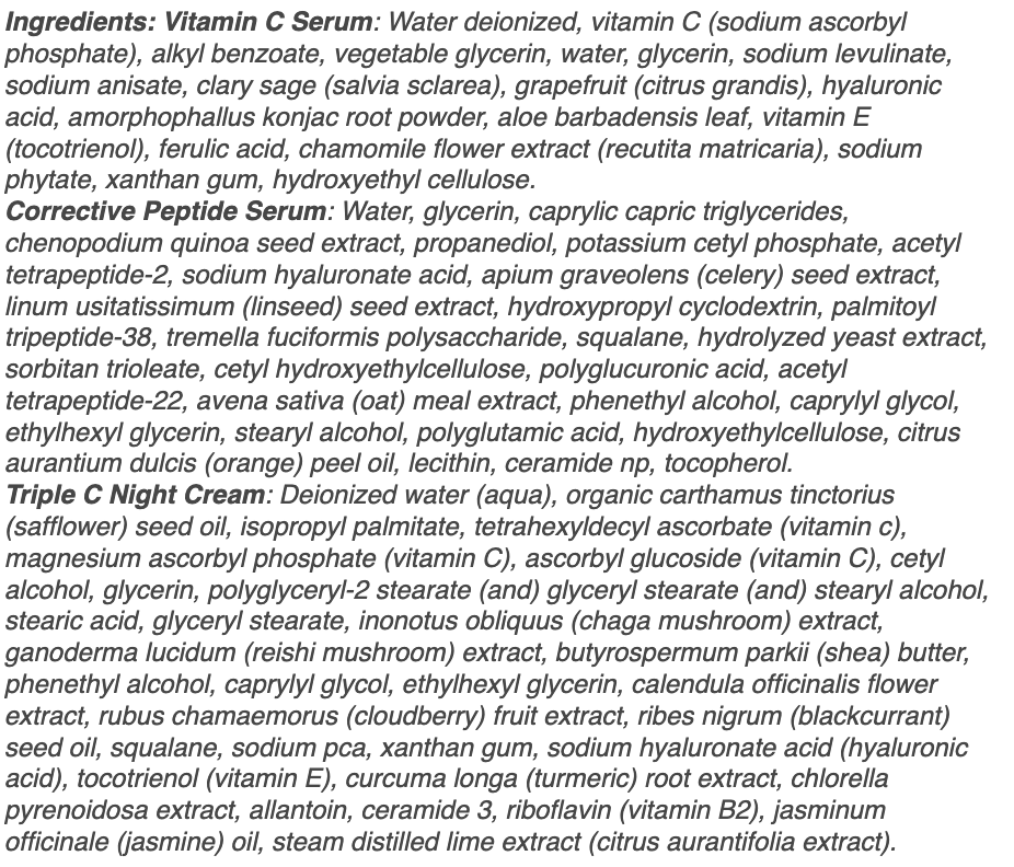 - Set includes: Vitamin C Serum, Triple C Night Cream & Corrective Peptide Serum
