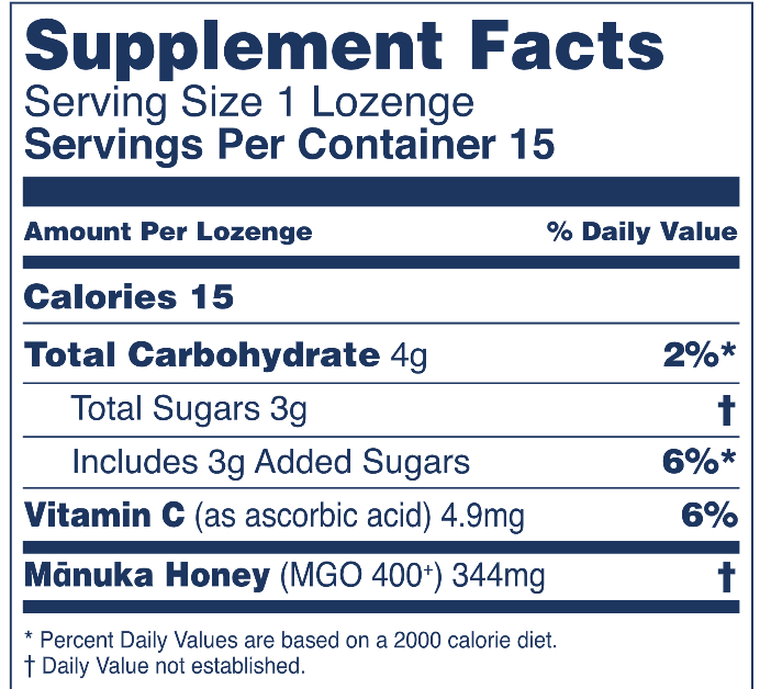 Given by nature, backed by science. These soothing lozenges combine the natural goodness of premium New Zealand Manuka Honey, the natural power of propolis and the added boost of Vitamin C.