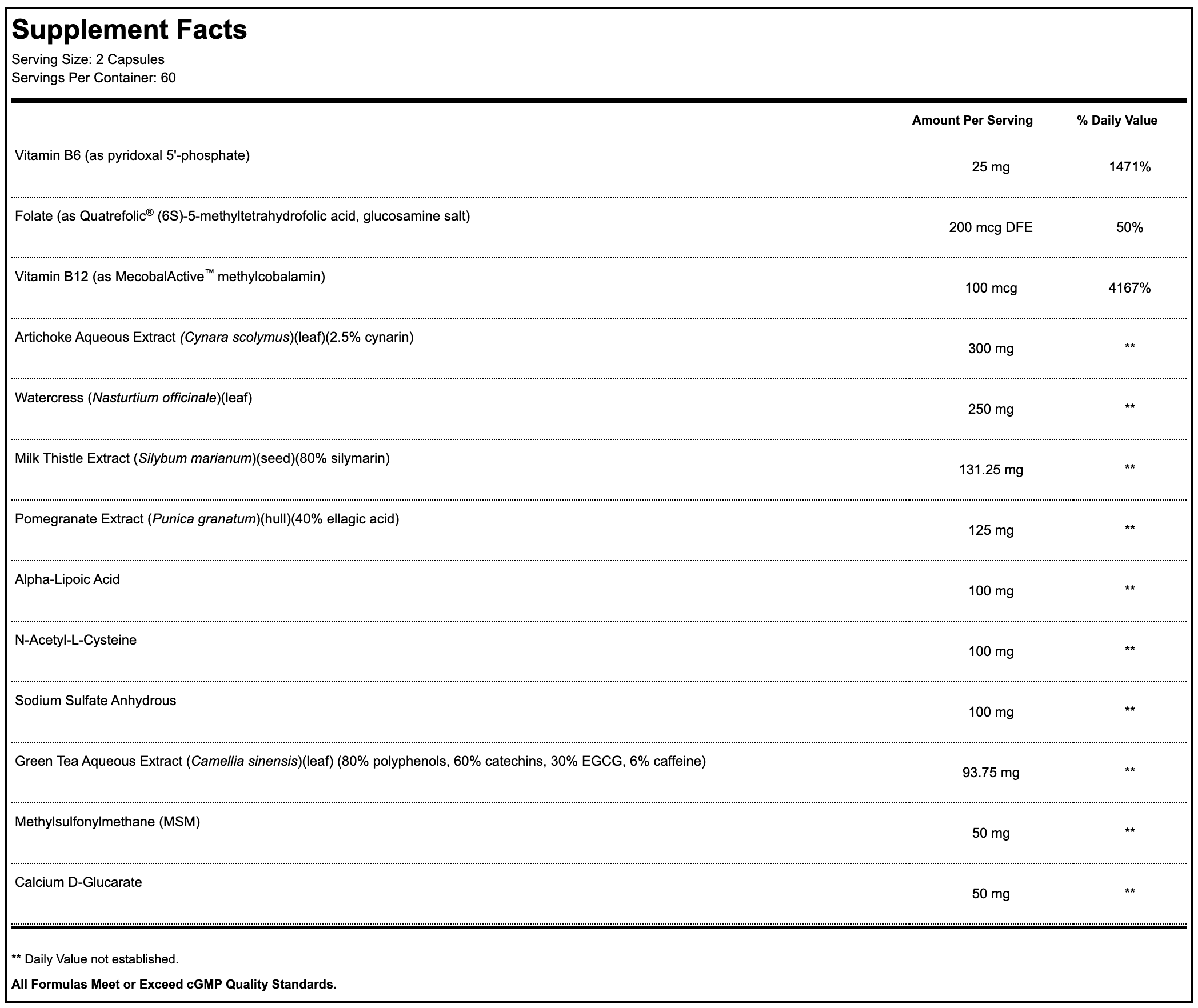 MedCaps DPO™ is formulated to support phase I and phase II detoxification, hence the term “Dual-Phase Optimizers.†Ellagic acid, catechins, glucosinolates, silymarin, artichoke leaf, alpha-lipoic acid, methylsulfonylmethane (MSM), N-acetyl-L-cysteine (NAC), and calcium D-glucarate support critical steps in the complex process of detoxification—a function essential to overall health and vitality. This unique formula provides activated B vitamins for enhanced bioavailability, including 5-methyltetrahydrofolate (5-MTHF) as Quatrefolic® for optimal folate utilization. MedCaps DPO provides antioxidant support to minimize the damaging effects of free radicals generated between the two phases.*