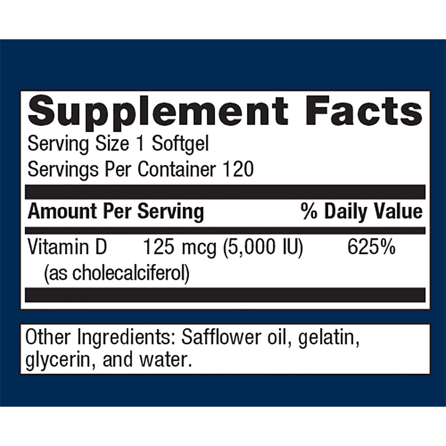 - Provides high-potency vitamin D3Â (125 mcg/5,000 IU) in easy-to-absorb form
