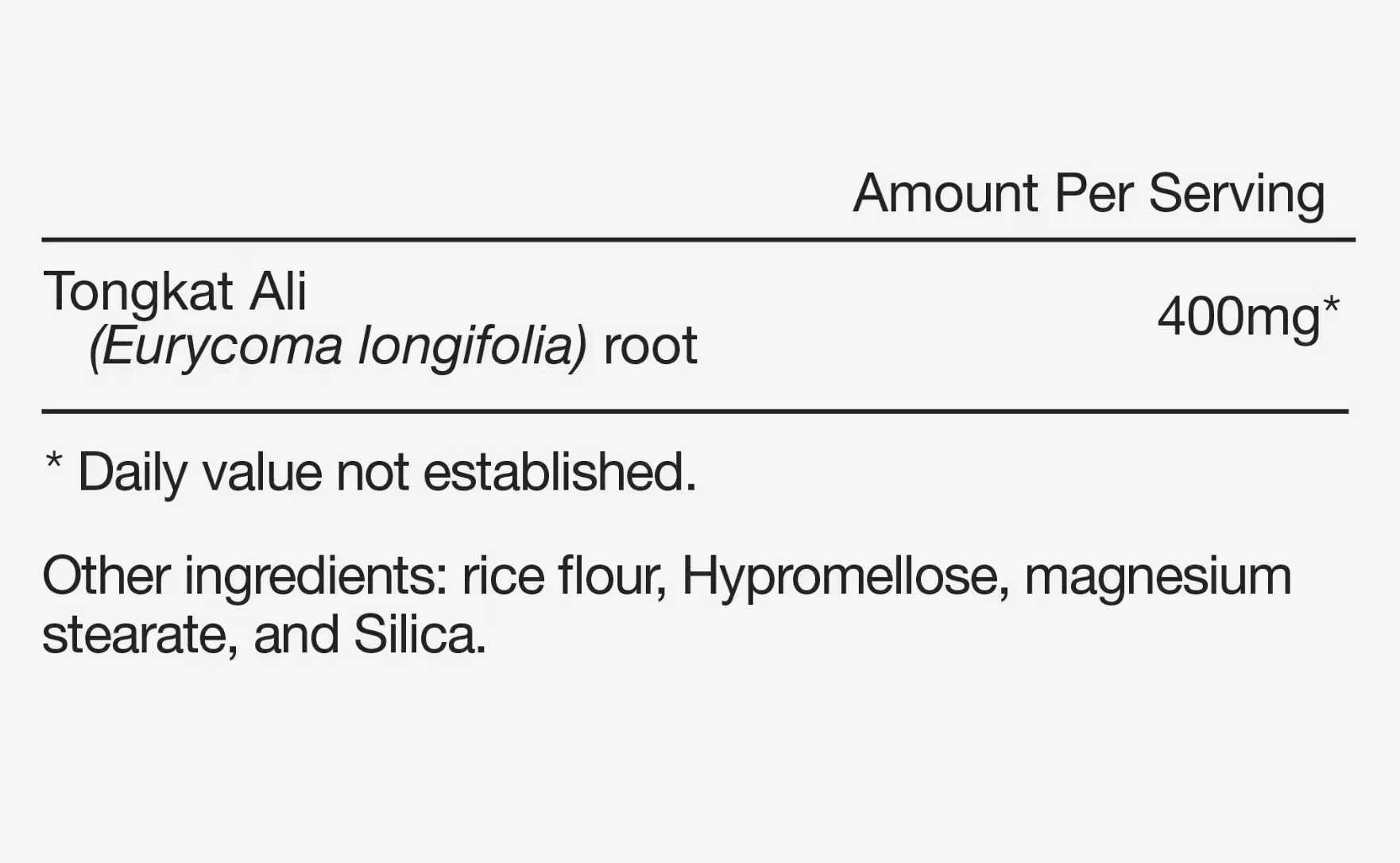 How to use: 1 Serving (2 Capsule, 400mg) daily, or as directed by your healthcare professional. Tongkat Ali can have a mild stimulant effect, therefore, it is suggested to take earlier in the day.