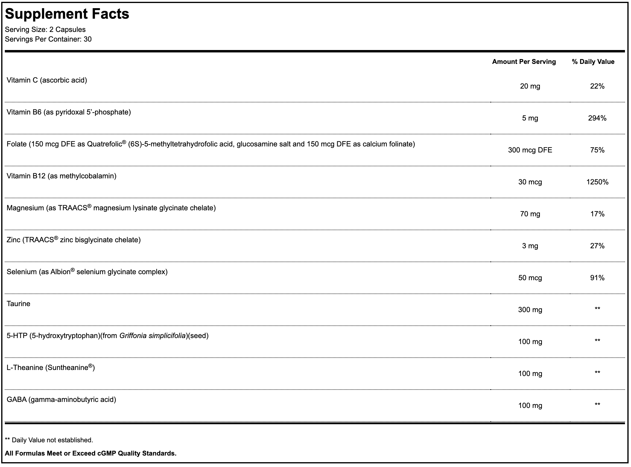 Mood Food ES™ combines the same vitamins, minerals, and amino acids as first generation Mood Food™. Modification in quantities of ingredients, plus the addition of Suntheanine®, vitamin C, and selenium, further enhance synthesis of chemical messengers that support calmness, a healthy mood, and a healthy nervous system.*