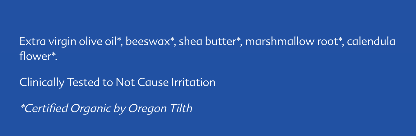 Use on nursing nipples to quickly soothe skin. It also can be used as a pump lubricant and does not need to be removed prior to breastfeeding. Certified Organic by Oregon Tilth