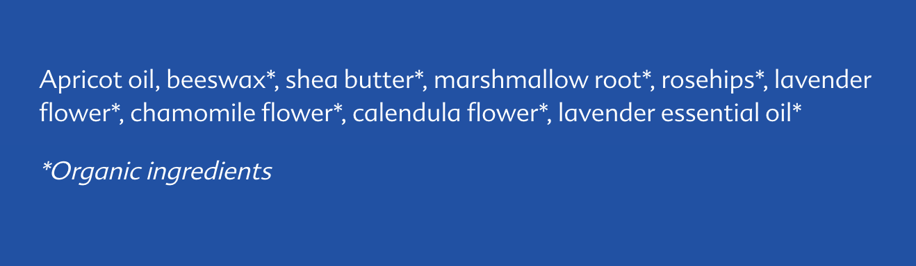 Rub onto growing belly and breasts to help moisturize and nourish skin. Easily absorbed with a light chamomile and lavender scent.