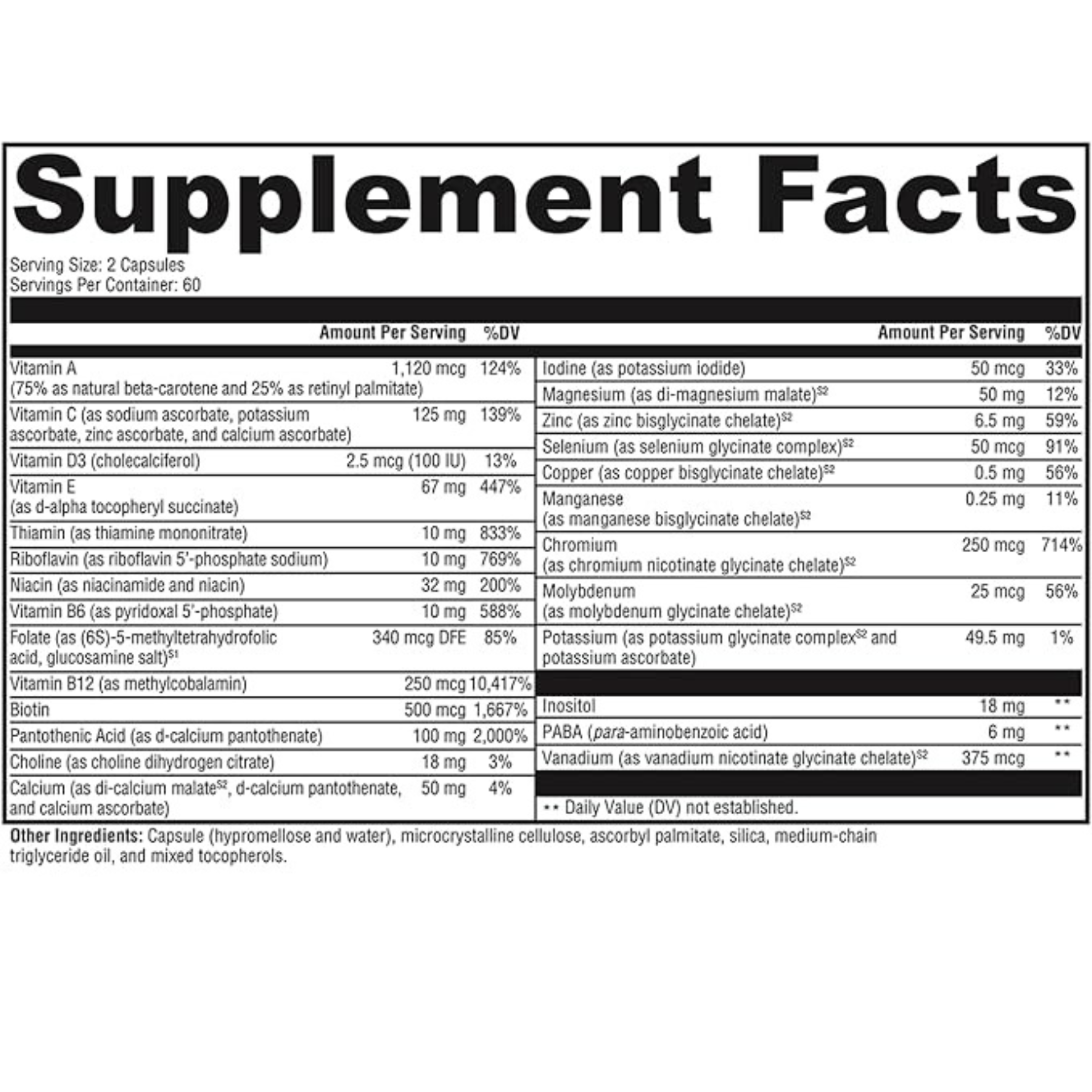 Alive + Well offers our essential multivitamin featuring a premium, multivitamin/mineral blend of high-quality vitamin and mineral forms selected for optimum utilization. The comprehensive nutrient profile is delivered in a vegetarian capsule and supports foundational wellness; provides antioxidant activity with vitamins C and E, selenium, and beta-carotene; and supports detoxification.*
