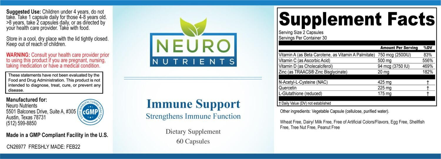 Immune Support contains a synergistic and evidence based blend of antioxidants, vitamins, minerals, amino acids and botanicals that support immune function. Each ingredient in this formulation was carefully chosen based on its level of scientific evidence, foundational role in supporting immune health, and clinical experience in functional medicine supporting patients through times of illness and immune challenges.