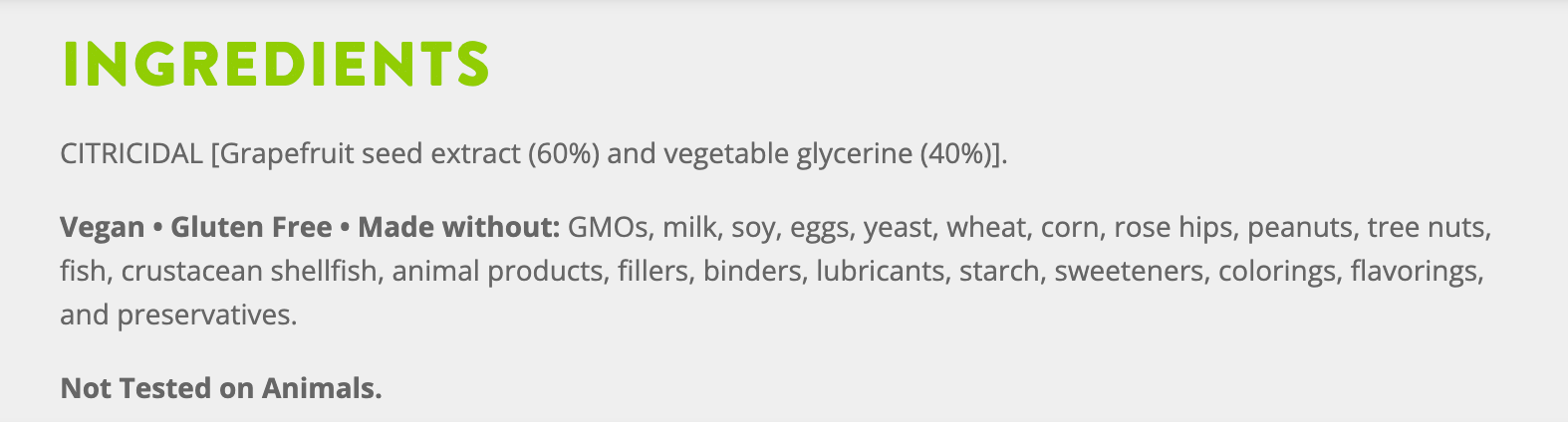 NutriBiotic® Maximum GSE Liquid Concentrate provides the highest concentration of grapefruit seed extract available. Contains Citricidal (60% grapefruit seed extract and 40% vegetable glycerin), a compound derived from the seed and pulp of grapefruit. The grapefruit bioflavonoids (polyphenolics) are converted into an extremely potent compound.