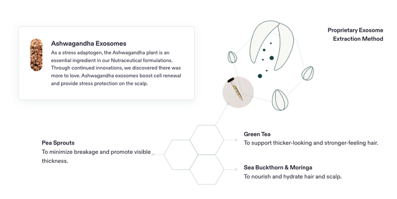 A lightweight hair serum with patent-pending Ashwagandha Exosomes to support visibly thicker, stronger hair in as little as 90 days.Â