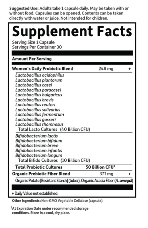 Dr. Perlmutter created this unique “just one capsule a dayâ€, shelf-stable probiotic designed to support a woman’s microbiome with a high count of diverse probiotic strains including L. reuteri and L. fermentum to support women’s digestive, immune system and vaginal health.†With a high CFU count and specially selected probiotic strains, Once Daily Women’s also contains an organic whole food prebiotic fiber blend for optimal benefit.