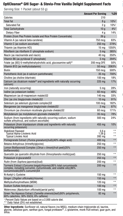 OptiCleanse® GHI Sugar- and Stevia-Free‡ is a comprehensive, fructose-free, low-allergy–potential dietary supplement designed to support gastrointestinal (GI) function and balanced detoxification. It features VegaPro™, XYMOGEN’s proprietary amino acid and pea/rice protein blend; Aminogen®, to facilitate protein absorption; phytonutrients; mineral amino acid chelates; and activated B vitamins, including Quatrefolic® and methylcobalamin. In conjunction with a modified elimination diet, OptiCleanse GHI Sugar- and Stevia-Free‡ addresses GI and hepatic function as well as eicosanoid balance and cytokine metabolism. This formula is suitable for vegans.*