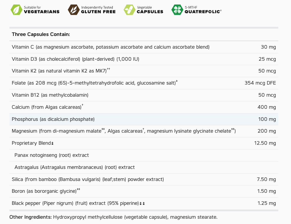 - Includes vitamin C, silica, boron and phosphorus for bone support*
