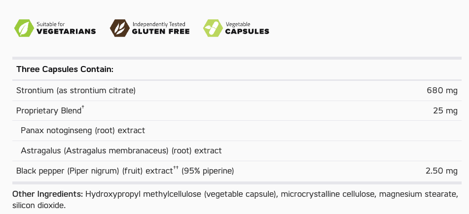 OsteoV SC™ is an all-natural strontium citrate supplement that is clinically proven to increase bone mineral density when combined with the plant calcium, minerals and bone supporting nutrients found in NuMedica’s Osteo Vegan™. Strontium, a trace mineral found in seawater and soil, is a mineral with similar properties to calcium. Research has shown that strontium may play a role in the formation of osteoblasts, new bone forming cells, while at the same time slowing the breakdown of old bone by inhibiting osteoclasts.*