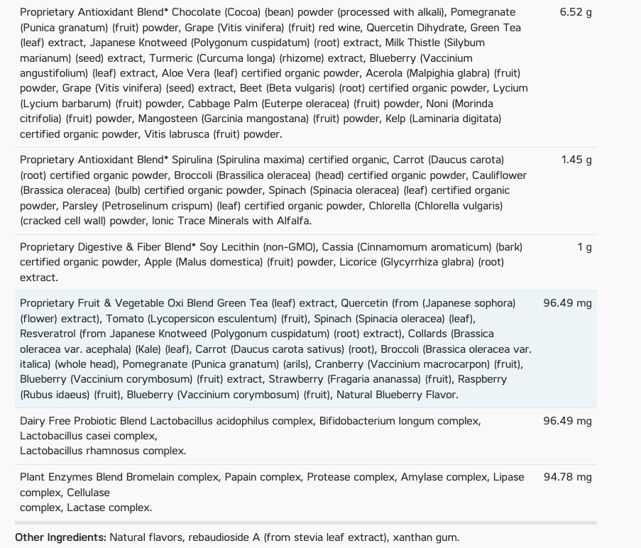 Each scoop of Power Greens® Chocolate has a high ORAC value, providing powerful antioxidant support. ORAC (Oxygen Radical Absorbance Capacity) is a method of measuring antioxidant capacities of different foods. Consuming foods with high antioxidant capacity is believed to play an important role in the elimination of free radicals and in the achievement of physiological balance.*