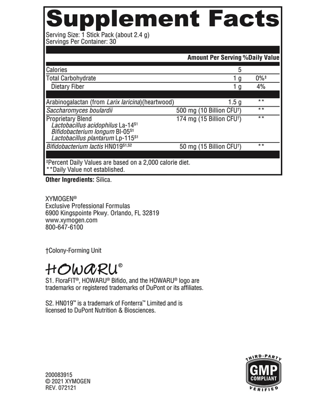 - Contains lactobacillus and bifidobacterium strains. Formulated to Exclude: Wheat, gluten, soy, animal and dairy products, fish, shellfish, peanuts, tree nuts, egg, ingredients derived from GMOs, and artificial preservatives. XYMOGEN probiotic nutritional supplements are practitioner trusted.