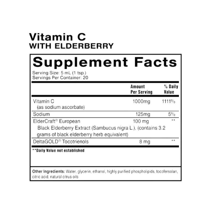 Immune Support Liquid Elderberry Supplement with Vitamins C + E.