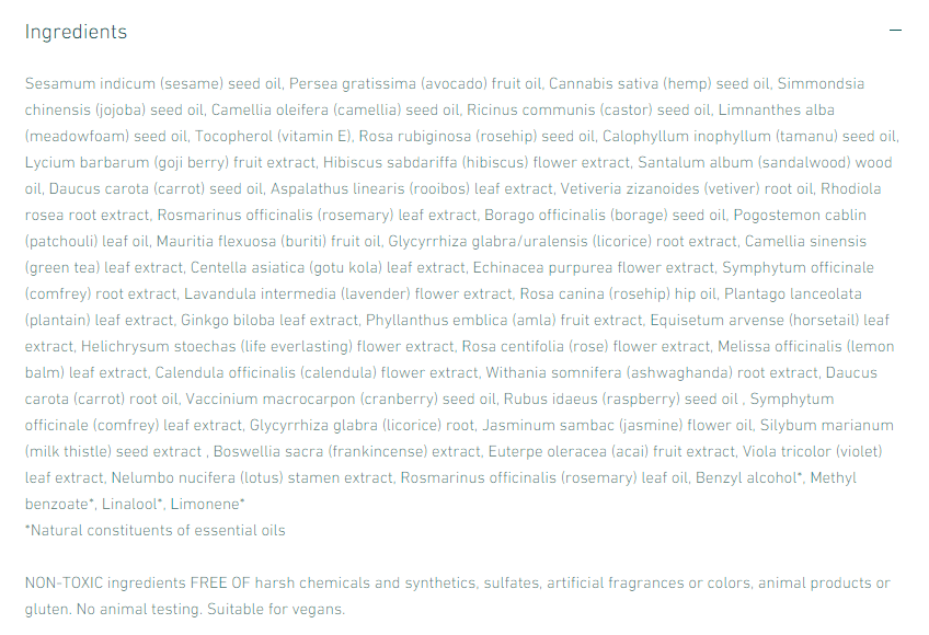Ideal for all ages including young adults and teens, Ruby’s 26 herbs and berry infusion with essential minerals and vitamins supports cell renewal and hydration. Milk thistle seed extract, vetiver oil and Gotu kola extract harmonize to maintain balance and daily vibrancy.